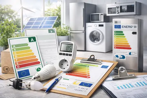 در راستای سیاستهای کاهش مصرف انرژی و مقابله با تغییرات اقلیمی، اتحادیه اروپا دستورالعملهای EcoDesign و Energy Labelling را اجرا میکند. این مقررات تولیدکنندگان را ملزم میکند که محصولات برقی خود را با راندمان انرژی بالا طراحی کرده و برچسب مصرف انرژی روی کالا درج کنند. رعایت این استانداردها برای صادرات لوازم خانگی، تجهیزات صنعتی و دستگاههای الکترونیکی الزامی است.
